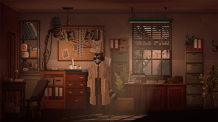为了撰写第二篇专题报道,我与EggNut的《支柱》的叙事设计师Aleksandra Korabelnikova进行了对话,她所开发的游戏是一款了不起的横版侦探游戏,背景设定在居民都是拟人化动物的温哥华。我们讨论了这款游戏的像素画风,它黑暗冷酷的剧情构思来源,动物角色是如何让人诚实探讨社会问题的,以及在工作室成员分布于六个时区的情况下开发游戏的好处和坏处(坏处:没有足够的拥抱)。